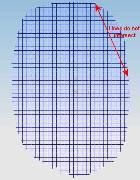 I next imported the lines into UG and ran into the same problems as before. I was able to get a decent surface from the largest square area of intersecting lines. Download UG Part