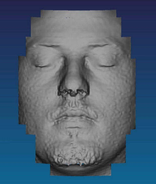 I next just added patches from the side scans to places in the center scan where there were holes. This would get rid of double surfaces, but also reduce the total area of the face being modeled.
