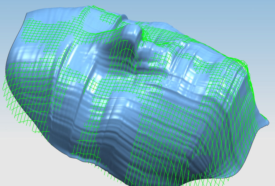 Importing the scanline points into UG gave many of the same problems. Studio Curves are the only ones that let you go in afterwards and alter their control points, but they requir selecting every point in every line, a task that would take hours. fitting splines to the continuous line of points gave the same problems as in imageware.